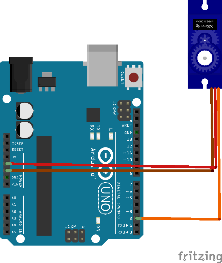 Note: If you are using more than one servo or a larger servo, you must use an external power supply to provide 5V to the motor. Make sure to connect the ground between the Arduino board and the power supply, so they have a common reference.